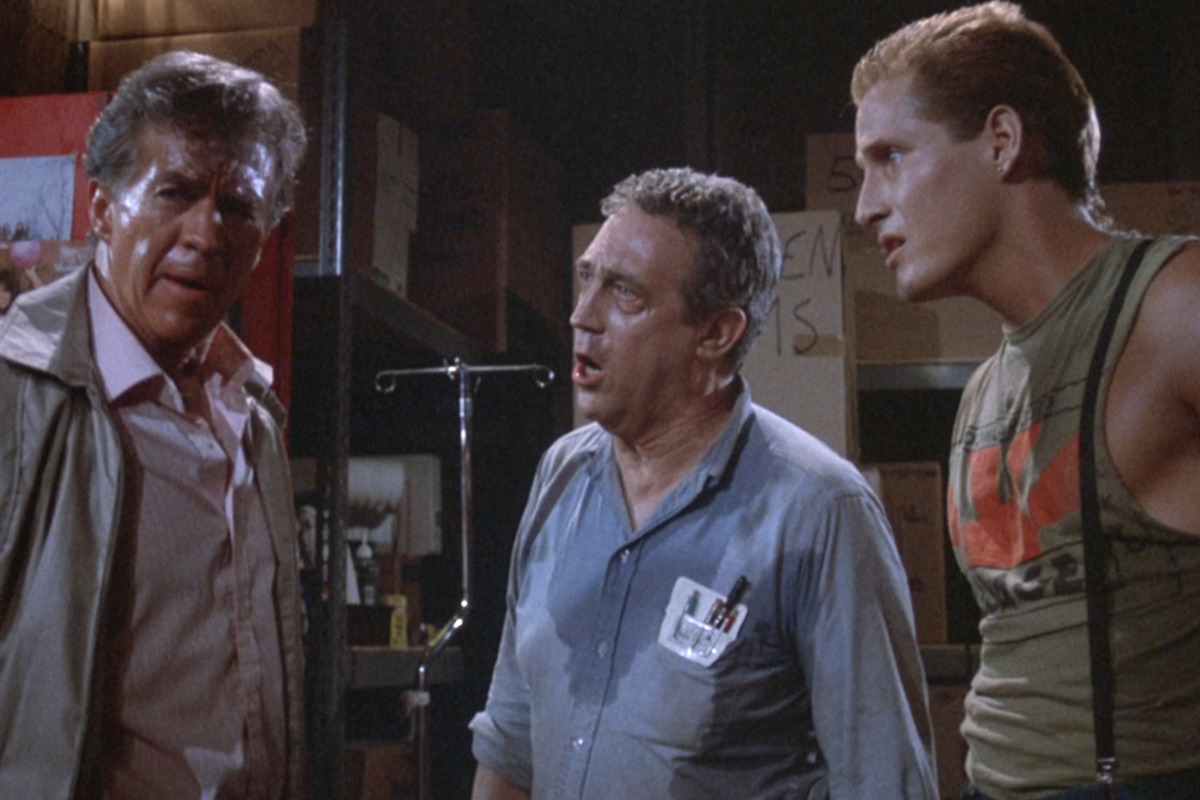 Petugas pasokan medis Louisville, Frank (James Karen) dan Freddy (Thom Mathews), membuka tong penyimpanan dan tanpa sengaja melepaskan gas.